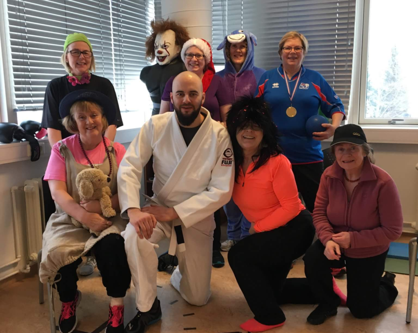 Hann var hress MS-hópurinn sem mætti í fullum öskudagsskrúða í þjálfun hjá Styrk í gær. Að sjálfsögðu var þó ekki slegið slöku við æfingarnar þó búningarnir flæktust fyrir hjá sumum og þyngdu aðeins æfingarnar.
