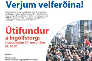Uppfærð 23.11. – Næsta mánudag, þ. 24. nóvember kl. 16:30 verður efnt til fjöldafundar á Ingólfstorgi á vegum heildarsamtaka þeirra þegna samfélagsins, sem sízt mega við skerðingu á kjörum sínum, þ.e.a.s. þeirra sem þurfa a