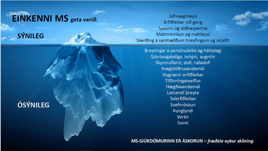 Fræðist hér um hin ósýnilegu einkenni MS sem eru líklegri til að mæta skilningsleysi og fordómum frá fjölskyldu, vinum og vinnufélögum heldur en hin sýnilegu og flestum skiljanleg. MS-SJÚKDÓMURINN ER ÁSKORUN – FRÆÐSLA EYKUR SKILNING.