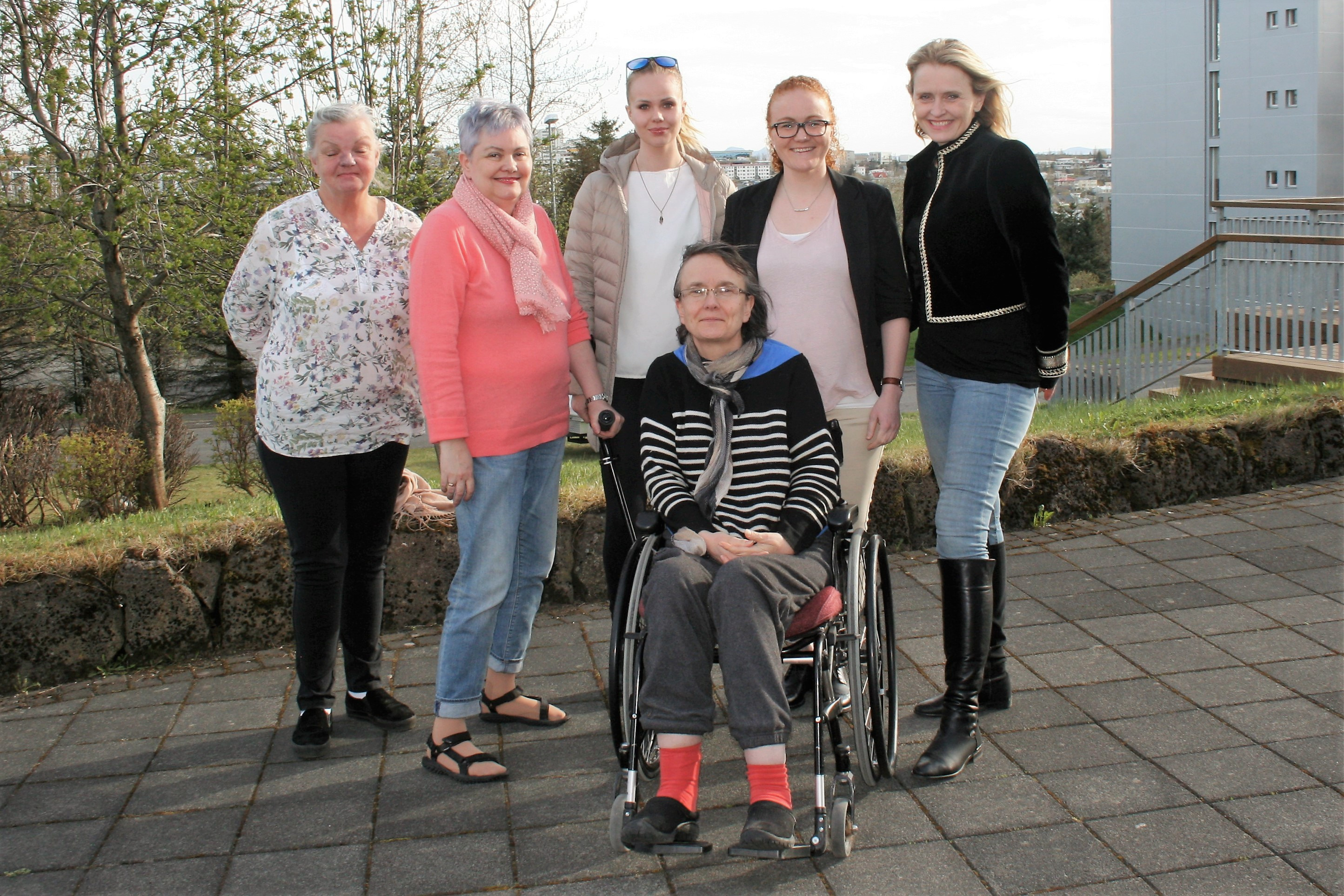 Á myndinni er stjórn MS-félagsins ásamt fráfarandi formanni, Berglindi Guðmundsdóttur. Á myndina vantar Gunnar Felix Rúnarsson og Evu Þorfinnsdóttur