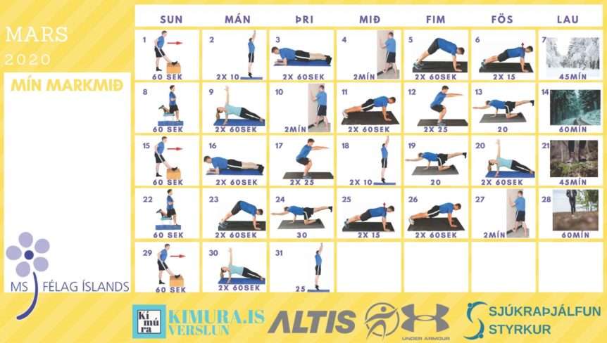 Hér getur þú nálgast æfingaprógrammið fyrir mars: